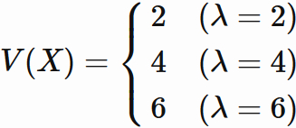 パラメータ $\lambda$ が大きいほど山の幅 (分散) が広がってゆくことが分かる。