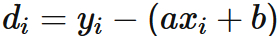 その直線と各データとの $y$ 座標の差を $d_{i}$ とする。