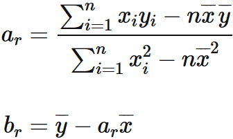 であり、$\overline{x}$ と $\overline{y}$ はそれぞれデータ $x_{i}$ と $y_{i}$ の平均値である。