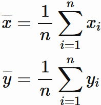 $x_{i}$ と $y_{i}$ の平均値 はそれぞれ