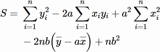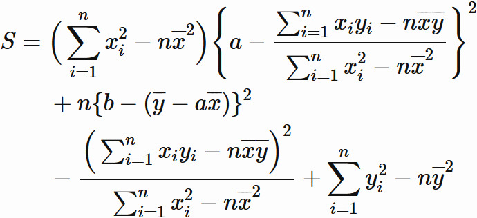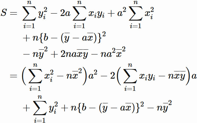以上をまとめると、$S$ を最小にする直線(回帰直線)は、