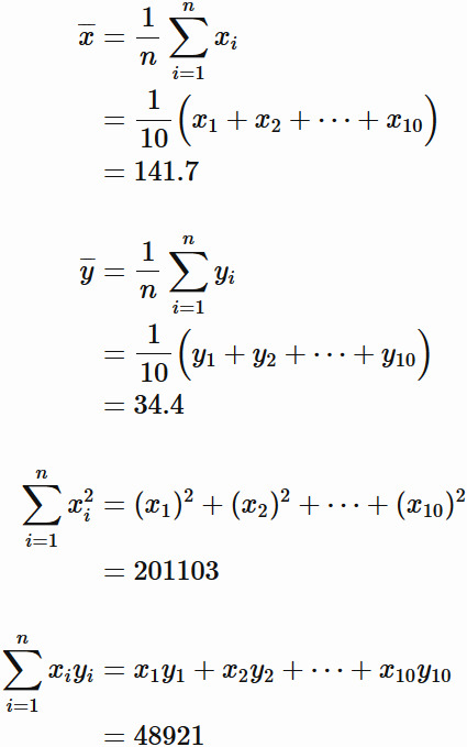 であり、$\overline{x}$ と $\overline{y}$ はそれぞれデータ $x_{i}$ と $y_{i}$ の
