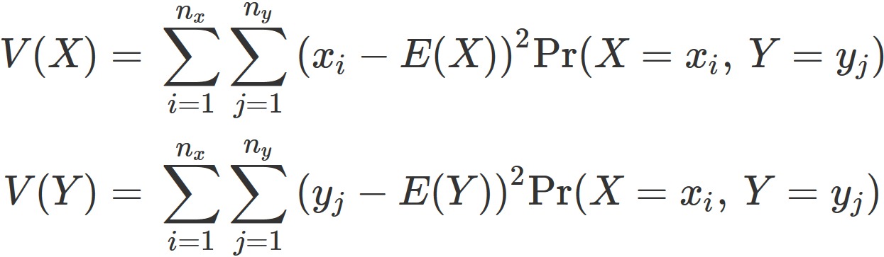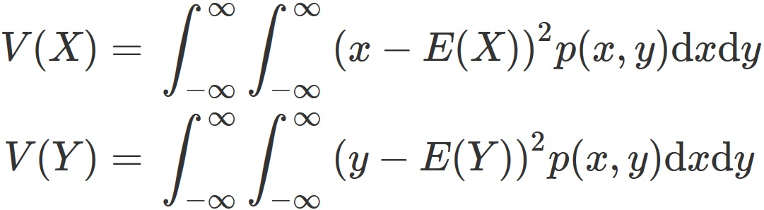 $X$ の分散 $V(X)$ と $Y$ の分散 $V(Y)$ は、