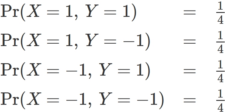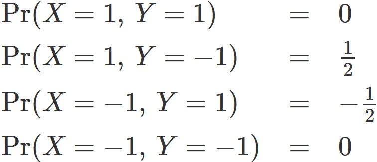 もしもコイン $X$ が表のときに必ずコイン $Y$ が裏になり、