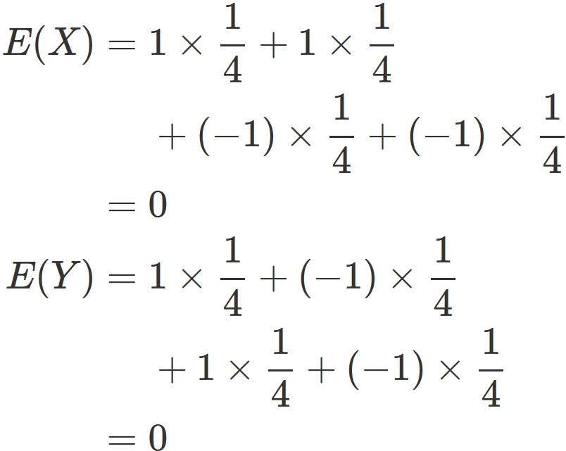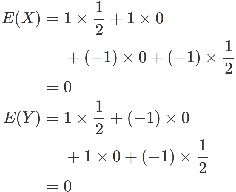 $E(X)$ と $E(Y)$ はそれぞれ $X$ と $Y$ の期待値である。