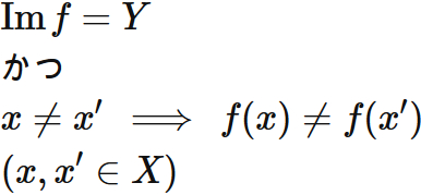 が成り立つとき、$f$ が全単射であるという。
