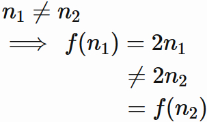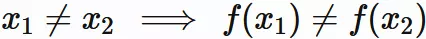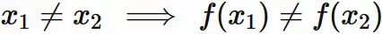 $x_{1}, x_{2}$ のそれぞれの像 $f(x_{1}), f(x_{2})$ が一致することはない