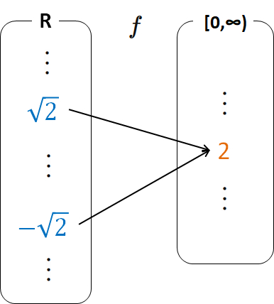 なぜなら、$Y$ の元 $8$ は $X$ の元 $2$ の像でもあり、$4$ の像でもあるからである。
