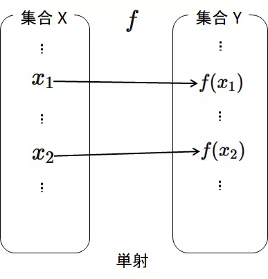 が成り立つとき、$f$ を単射という。