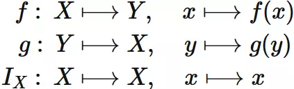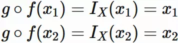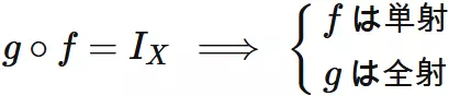 $f$ と $g$ の合成写像が $X$ 上の恒等写像に等しいならば、