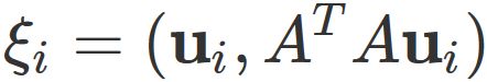 $\mathbf{u}_{i}$ が固有値 $\xi_{i}$ の固有ベクトルであることを表し、