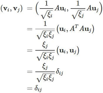 正規直交基底を成すように集めた $A^{T} A$ の固有ベクトルを