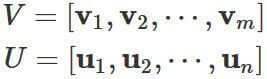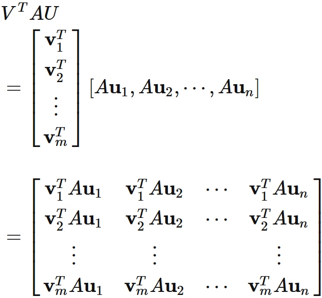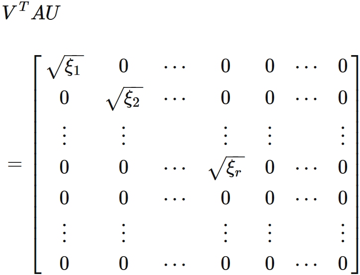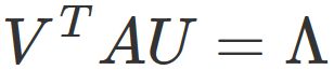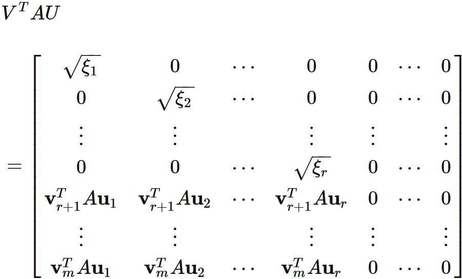 ここで $V$ と $U$ は、それぞれ $m$ 行 $m$ 列 と $n$ 行 $n$ 列 の直交行列である。