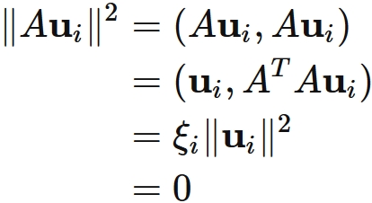 $A\mathbf{u}_{i} = 0$ であるので、