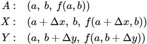 関数 $f(x,y)$ 上の点 $A$: $(a,b, f(a,b))$ を通る平面