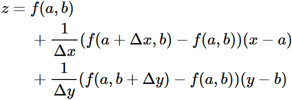 点 $(a, b)$ における $f(x, y)$ の接平面は、