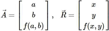 関数 $f(x,y)$ 上の二点の位置ベクトルを