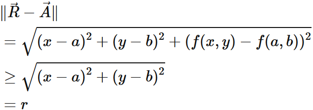 接平面の定義を満たす平面が実際に関数 $f(x,y)$ と接することを示す。