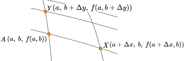 これは関数 $f(x,y)$ 上の点 $(a, b , f(a,b))$ を通り、