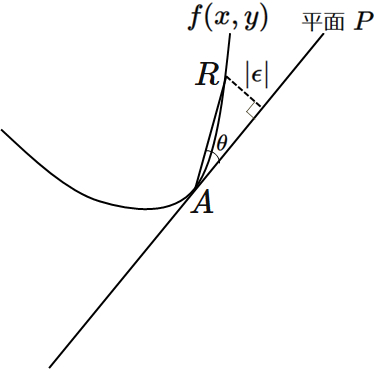 また、$f(x,y)$ と $P$ との差 $\epsilon $ を