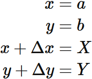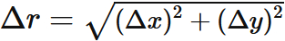 \Delta r = \sqrt{ \small (\Delta x)^2 + (\Delta y)^2}