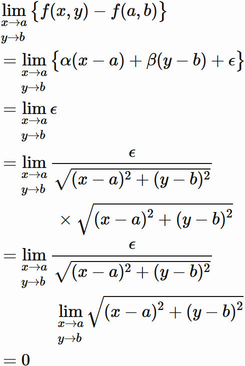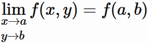 が成り立つので、$f(x,y)$ は $(a,b)$ で連続な関数である。