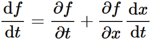 $t$ から $t+\mathrm{d}t$ に変化させた場合の $f$ の変化率