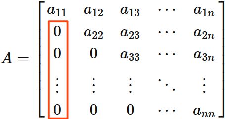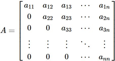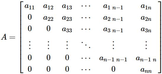 行列で表すと、対角成分よりも下側の成分が $0$ である次のような形行列になる。