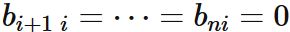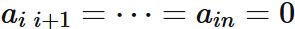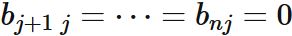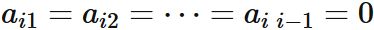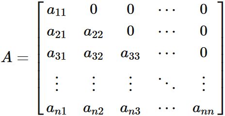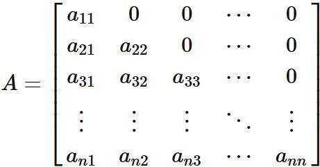 行列で表すと、対角成分よりも上側の成分が $0$ である次のような形行列になる。