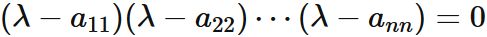 の固有値 $\lambda$ は $A$ の対角成分のいずれかに等しい。