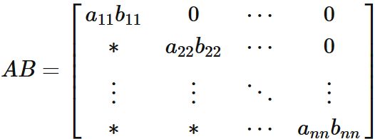 しかも対角成分が個々の下三角行列の対角成分の積になる。