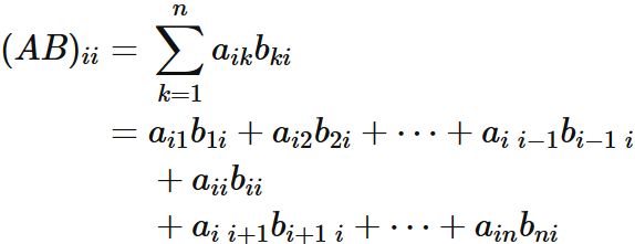 行列 $AB$ の $i$ 行 $j$ 列成分 $AB_{ij}$ は、