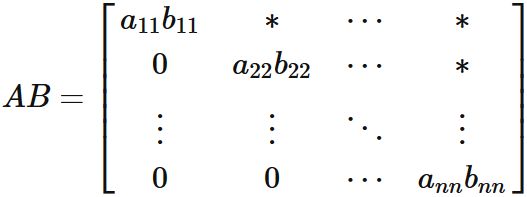しかも対角成分が個々の上三角行列の対角成分の積になる。