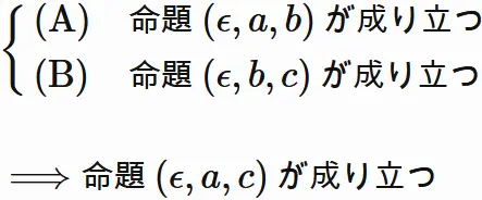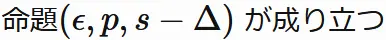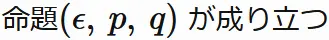 「命題$(\epsilon, p, q)$ が成り立つ」と略記することにする。