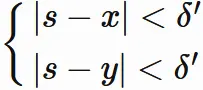 $x,y \in (s-\delta', \hspace{0.5mm}s+\delta')$