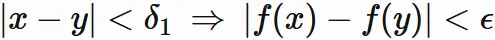 $x,y \in [a,b]$ である全ての $x,y$ には、ある正の数 $\delta_{1}$ が存在し、
