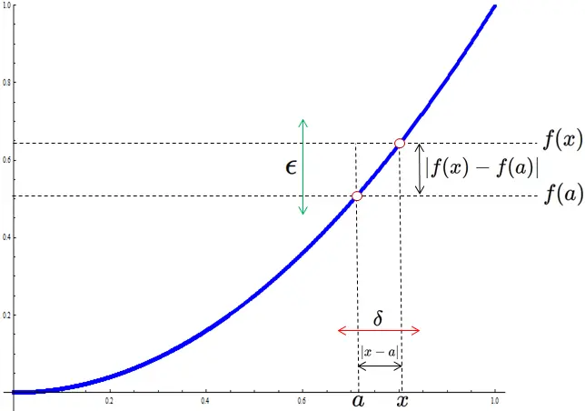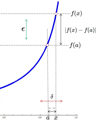 任意の正の数 $\epsilon$ に対して正の数 $\delta$ が存在し、