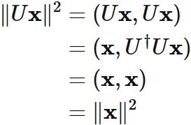 ユニタリ行列 $\Longleftarrow$ ノルムを不変に保つ