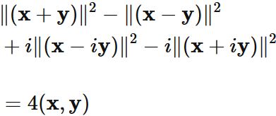 $\mathbf{x} + \mathbf{y}$ と $\mathbf{x} - \mathbf{y}$ と $\mathbf{x} - i\mathbf{y}$ と $\mathbf{x} +i \mathbf{y}$ に対しても成り立つ。