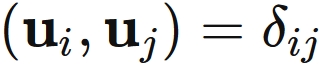 $\mathbf{u}_{i}^{\dagger} \mathbf{u}_{j}$ はベクトル $\mathbf{u}_{i}$ と $\mathbf{u}_{j}$ の間の ( 複素ベクトルの ) 標準内積に等しい。