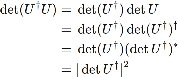 ユニタリ行列 $U$ の行列式 $\det U $ は、