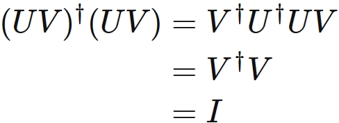 これらの積 $UV$ もまたユニタリ行列である。