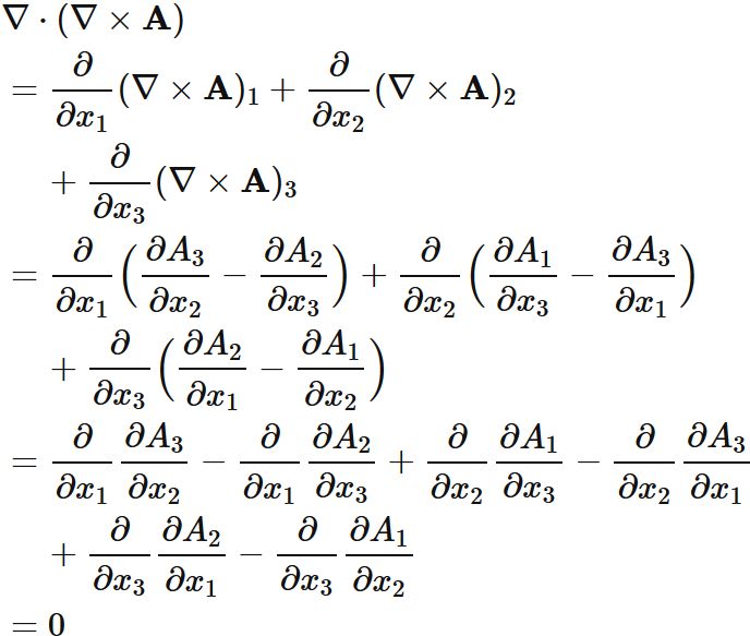 ベクトル場の回転の発散は恒等的に $0$ である。