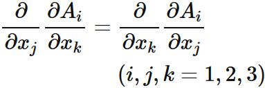 最後の等号では、ベクトル場の微分が入れ替え可能であること