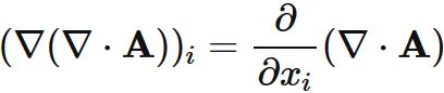 最後の等号では発散 $ (\nabla \cdot \mathbf{A})$ がスカラー関数であるので、