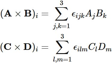 ベクトル四重積には、次の恒等式が成立する。