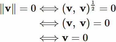 ベクトル空間 $V$ の各ベクトルに対して次の三つの性質