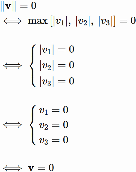 が成り立つ。$(I)$ よりノルムは $0$ 以上であるので、