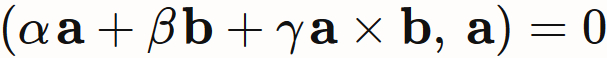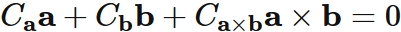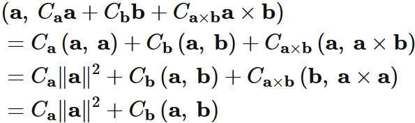 $C_{\mathbf{a} }, C_{\mathbf{b} }, C_{\mathbf{a} \times \mathbf{b} } $ が全て $0$ になるならば、
