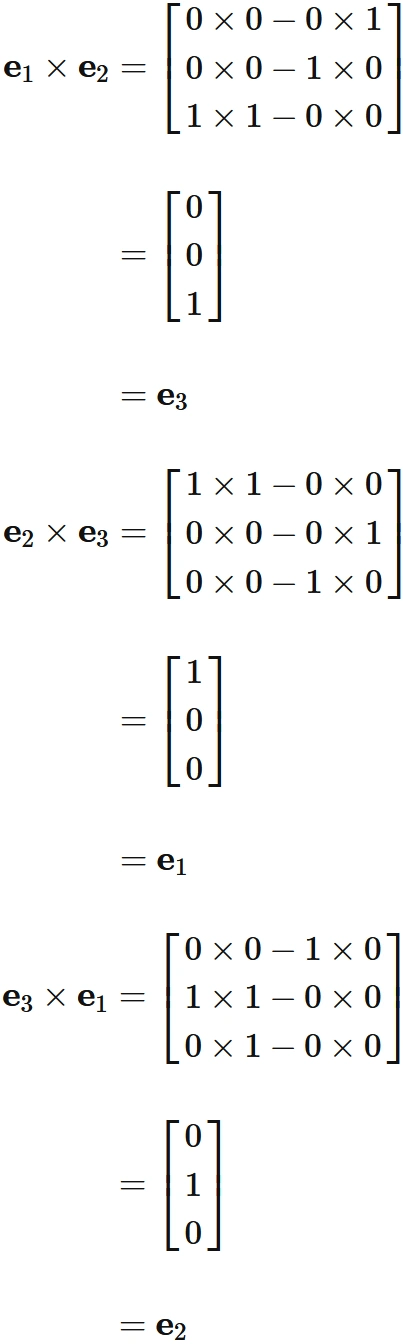 $\mathbf{e}_{2} $ と $\mathbf{e}_{3} $ の外積が $\mathbf{e}_{1} $ になり、